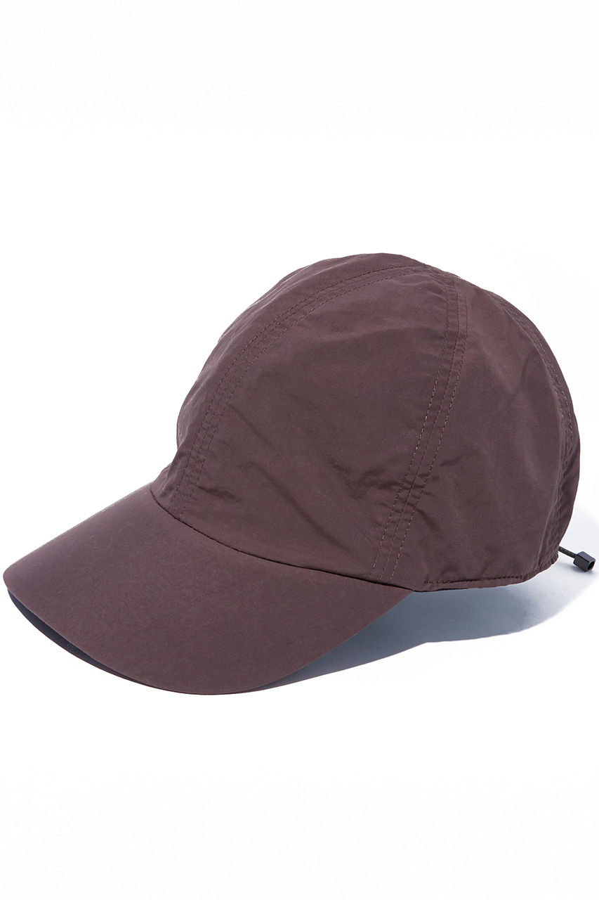 アーバンスポーティな表情で、日常からアウトドアまで馴染むキャップ。軽くドライなタッチと遮光機能で快適な被り心地。コード仕様のバックスタイルとシャープなシルエットで、軽快さとモダンさを両立。ブラック、ホワイト、ブラウンの3色展開。