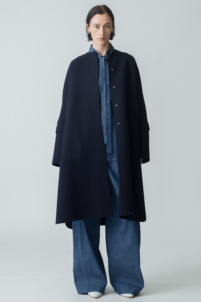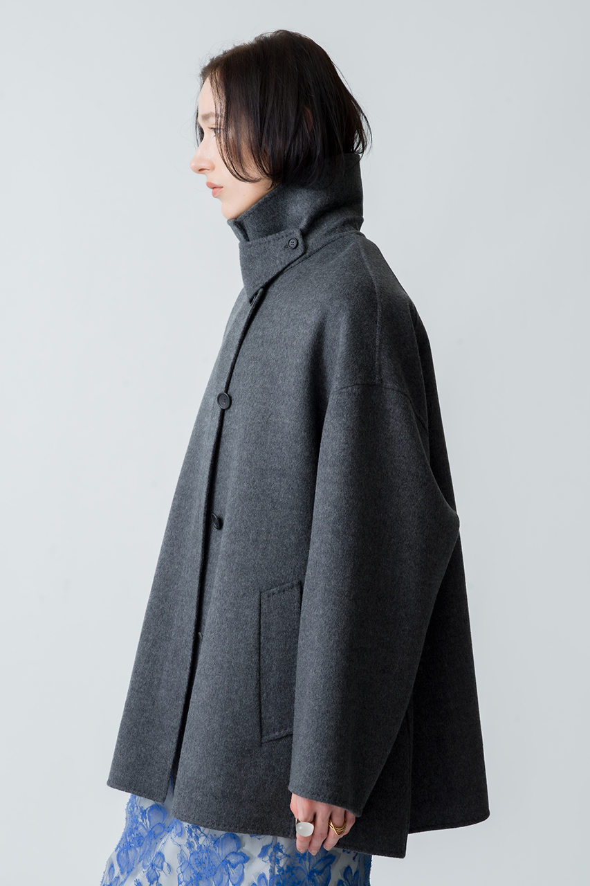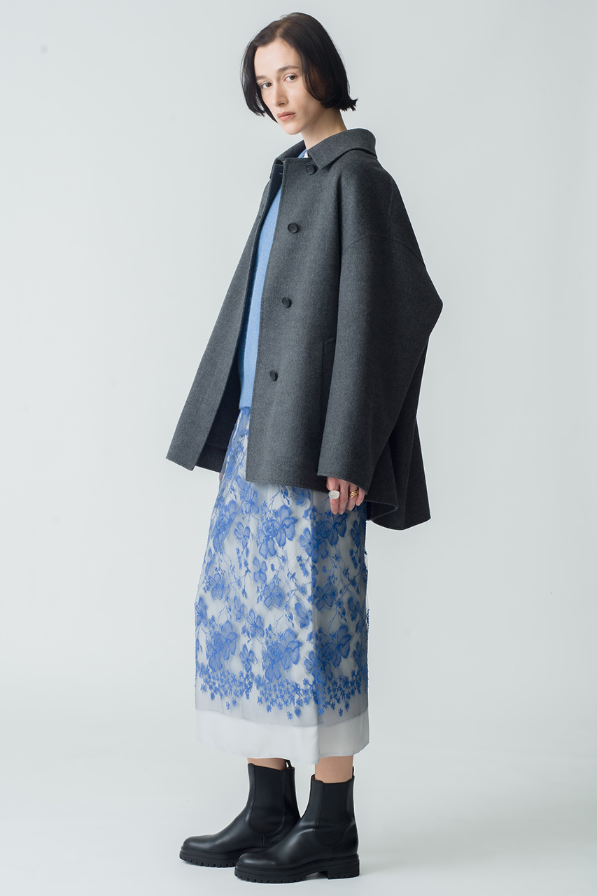 オフィスや学校行事、セレモニーなどシーンレスに着られるコートをお探しなら“リュクスシャルムビーバー”のロング丈が断然おすすめ! ショルダー周りや前後の分量感など、こだわりのパターンによってシンプルな中に計算された美シルエットが完成します。“リュクスシャルムビーバー”よりもやや短めな丈とサイドスリットで、ロングでもバランス良く着れる“リュクスメルトン”にも注目。立体的なフォルムと袖のベルトデザインがよりスタイリッシュなムードを醸します。