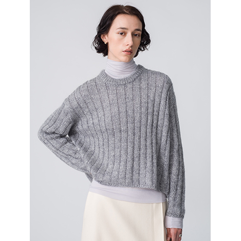 モヘアスパンコール クルーネックリブニットプルオーバー