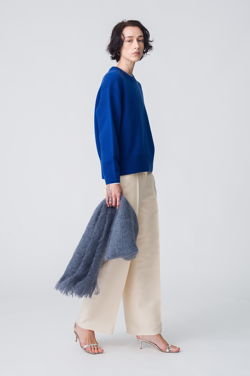 デイリーニットはシンプルなプルオーバーにおまかせ。上質なウールならではのスポンジーな膨らみとカシミヤのソフトな風合いを併せもった編地が特徴です。コートインにも合わせやすく、春先までロングシーズン着まわせます。毛羽立ちや型崩れが少ないのもうれしい!