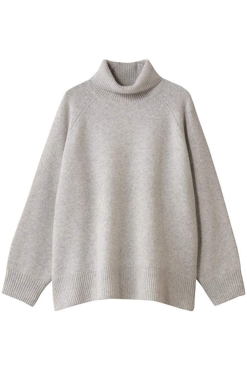 同素材でタートルネックもご用意。そのままストンと着られる長めの着丈で、ボディはあえてゆったりさせ、裾に少し動きを残しました。包み込まれるような着心地なのに襟まわりにはゆとりがあるのも◎。フロントを少しボトムインして抜け感を出しても素敵。