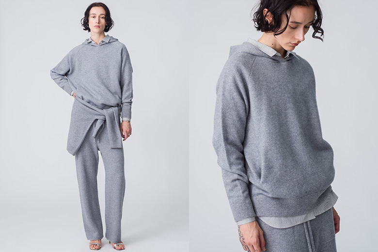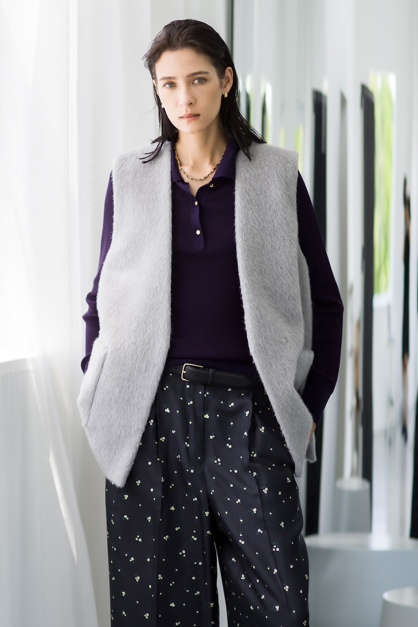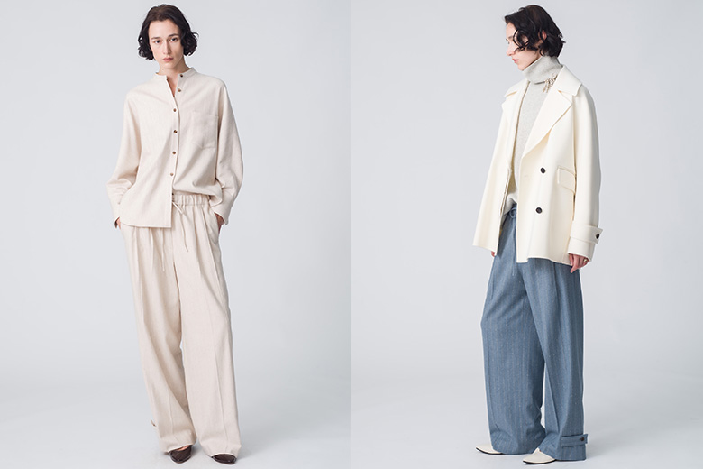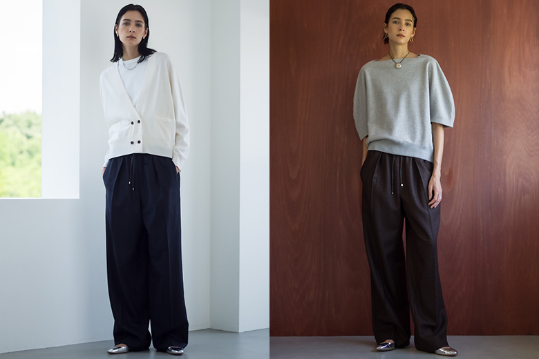 「寒くなるのが早かった今年はカシミヤ100%の贅沢なストレートニットパンツが大活躍。ストレートラインとステッチで抑えた前ポケットが、ニット素材でもすっきり見えるポイントです。シャツ合わせのきれいめコーデが今の気分。真冬に向けてワントーンスタイルにもトライしたいので、今は同素材のフィーディーを狙っています」。(スタッフH)