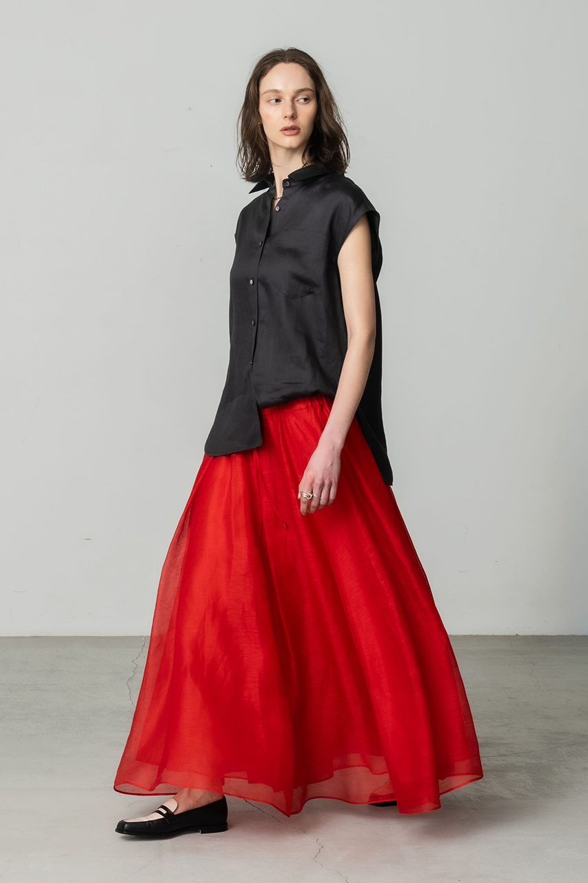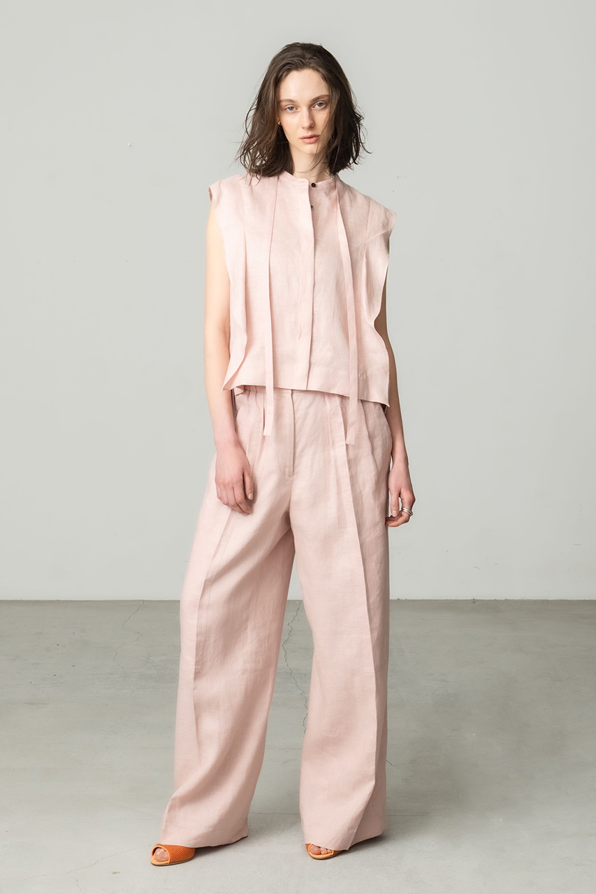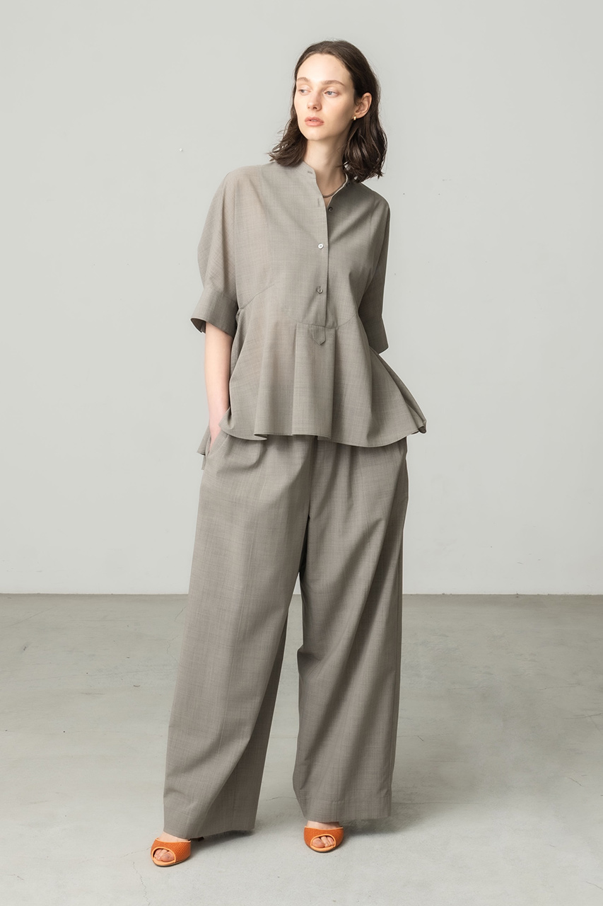 やわらかな雰囲気を醸すフレアブラウス×ワイドパンツはぜひセットアップで。クリーンなボザムディテールが程よく甘さを抑えたブラウスは、ウエストを高めで切り替えることでスタイルアップ効果をプラス。気持ち襟を抜くのが軽やかに着こなすコツ。オンスタイルにも着まわせるパンツはウエストゴムのイージー仕様。ボディラインを拾いにくいディテール使いに「エブール」のこだわりを詰め込みました。