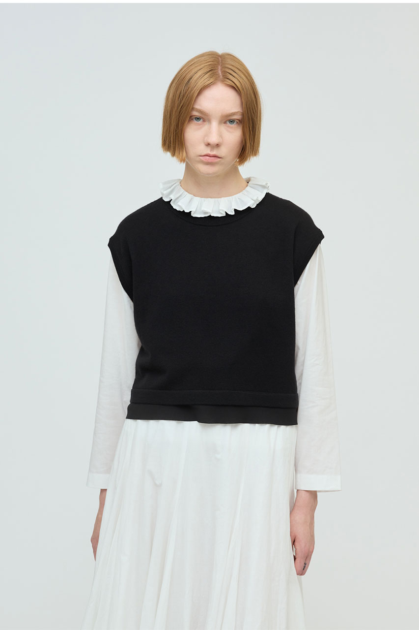 ニット×ジョーゼット(布帛)素材を組み合わせたシフォンフリルヘムベスト。