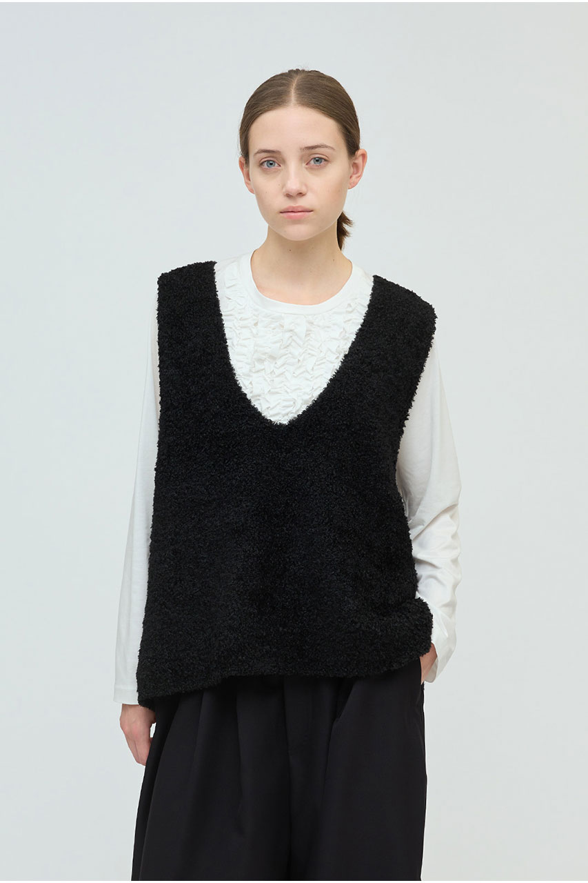 プードル糸を使用したふわふわで立体感のある素材が魅力のヘアリーVネックベスト。