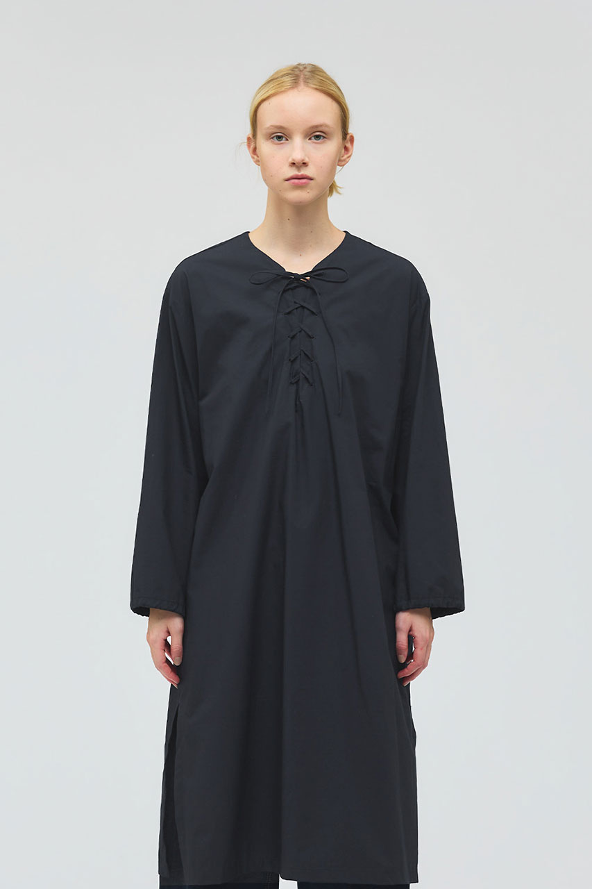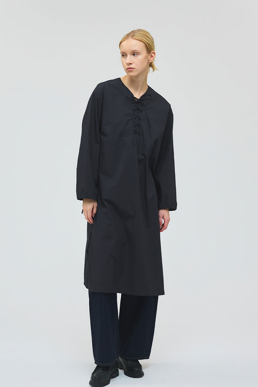 きれい目なウルティマコットンを使用したロングワンピースで、袖のロールアップがカジュアルなディテールを印象付けた魅力的なデザイン。