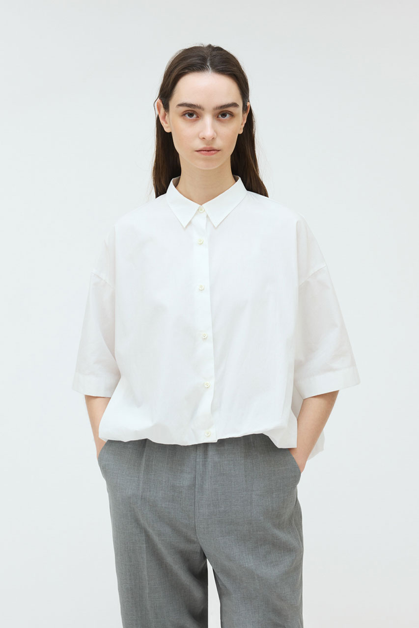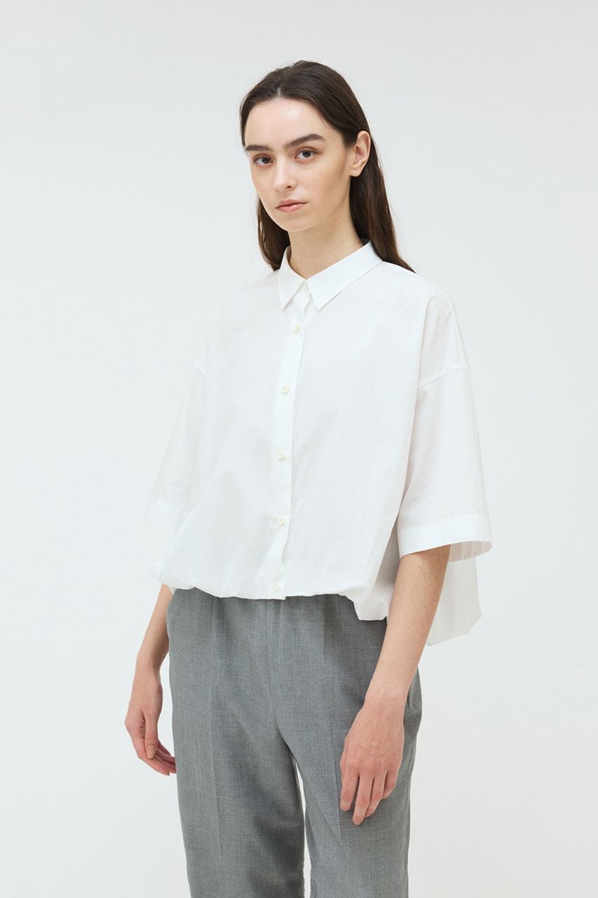 スッキリとした丈感と袖は5分丈で、幅を広めにした風通しの良いシャツです。
