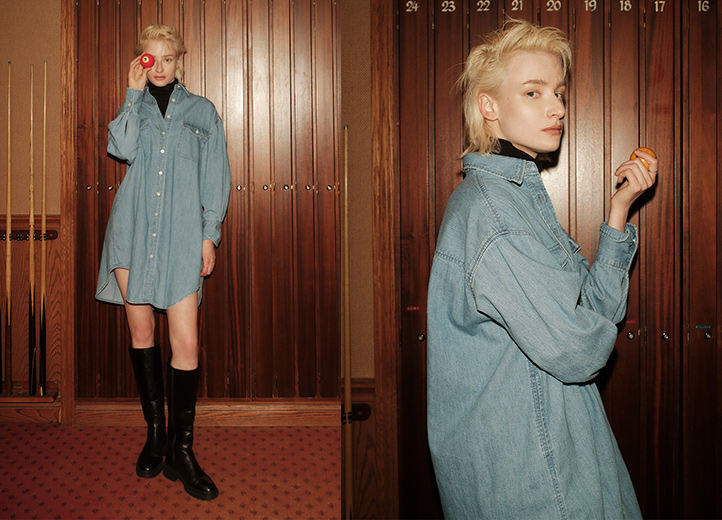 スタイリングの主役にも、軽やかな羽織りとしても活躍するデニムシャツワンピース。ほどよくゆとりを持たせたシルエットがこなれ感を演出し、胸元のポケットやラウンドした裾がさりげないアクセントに。インナーやボトム次第で季節を問わず着まわせ、ワードローブにあると頼れる優秀アイテム。