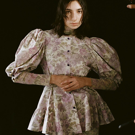 オリジナルのフォトフラワープリントブラウス。繊細な重色の表現にこだわり、奥行きを感じさせるプリントに仕上げました。印象的な立体感のある袖が、華やかなアクセントを添えます。