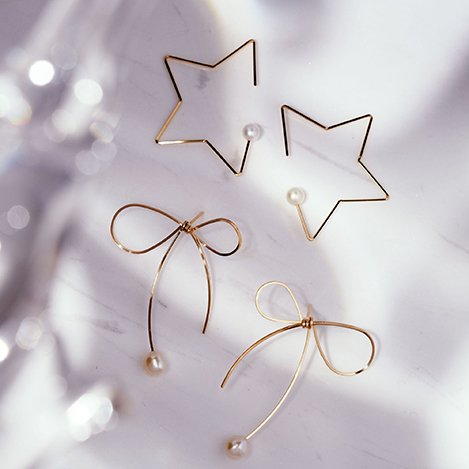 軽やかでストレスフリーな付け心地が大好評のワイヤーピアスシリーズから、エル・ショップ15周年を祝してデザインされた「リボン&スターモチーフ」が登場。
