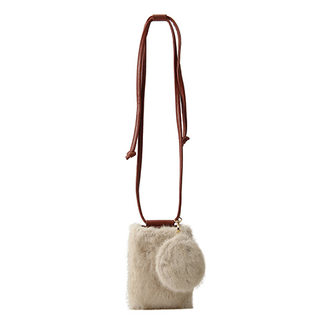 柔らかなファー素材が心地よい肌触りのスマートフォンバッグ。