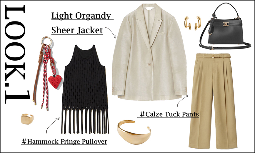 品がありつつもこなれ感を演出できる万能なライトオーガンジージャケットを主役に