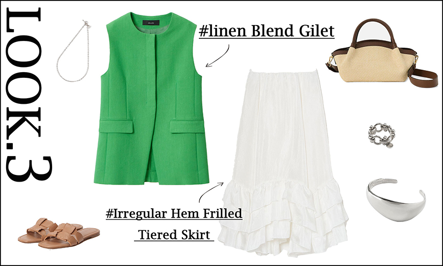 ジレ×フリルで楽しむ、大人の夏フェミニン