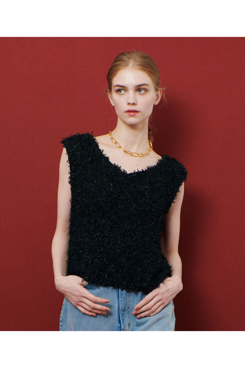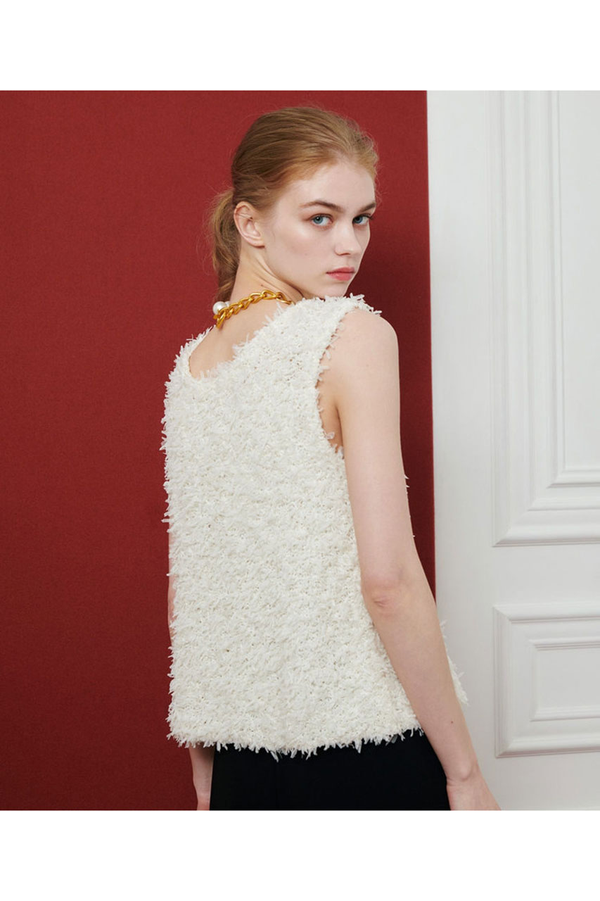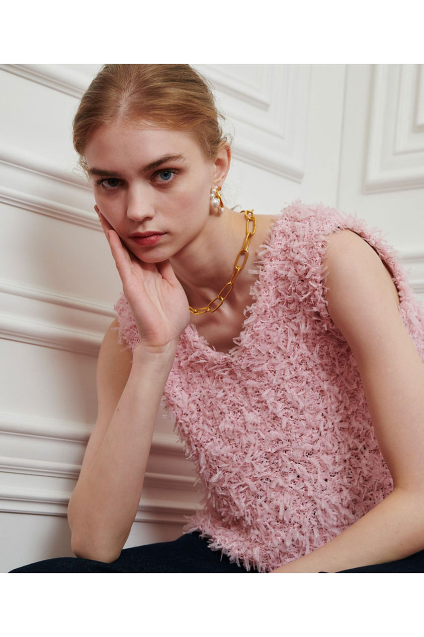チュールを混ぜ込んだ意匠糸で華やかな着映えトップスとして活躍間違いなし!