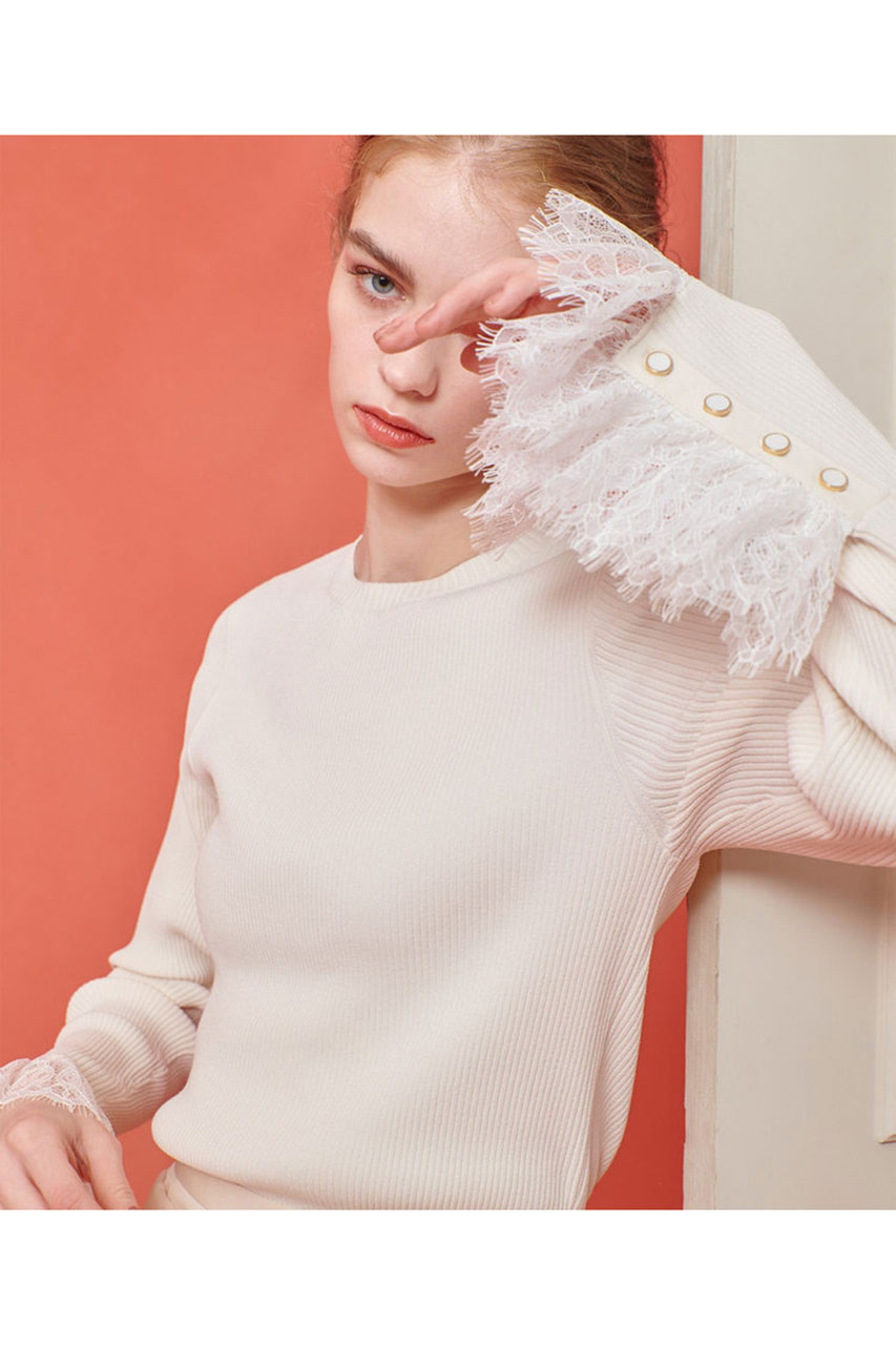 【Loulou Willoughby】スリーブヘムレースプルオーバー