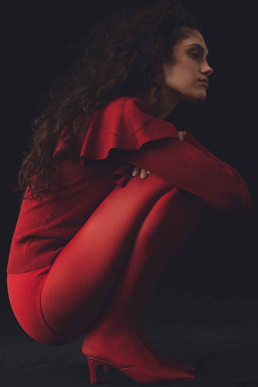 秋の入口にぴったりな一枚は、レッドカラーがおすすめです。