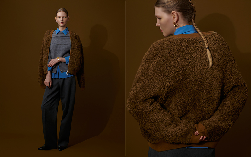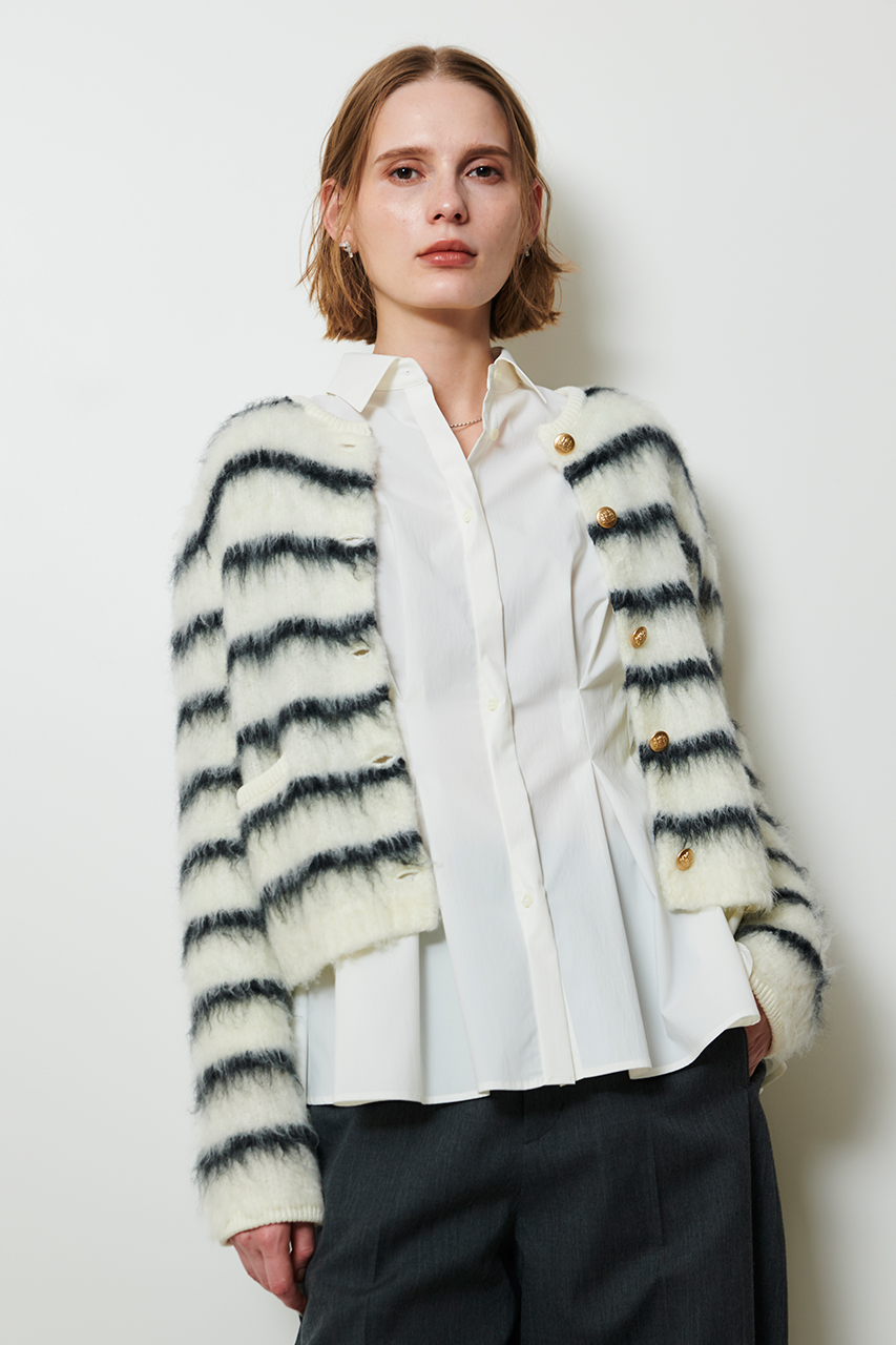 毛足の長いシャギー素材が魅力のカーディガン。コンパクトなシルエットはシャツやタートルを合わせてインナーとのコントラストを効かせて。