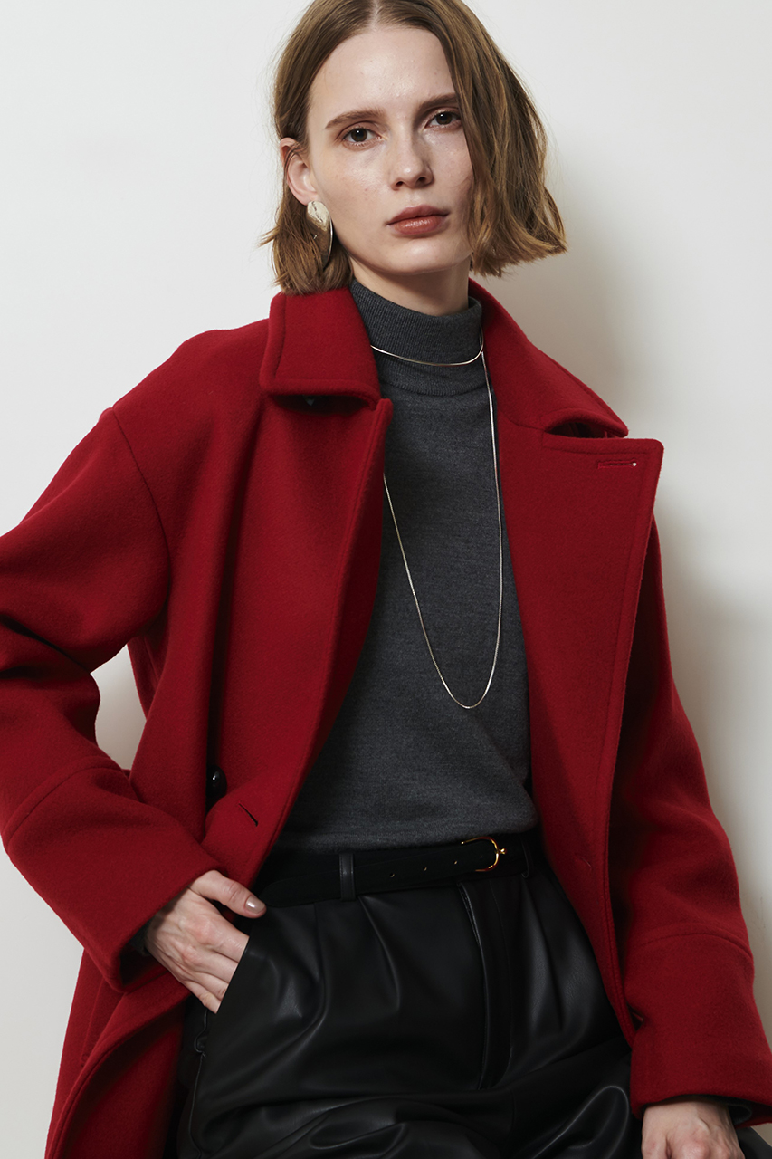カーディガン感覚で羽織れるニットボアブルゾンはコートとのレイヤードも楽しめる1着。