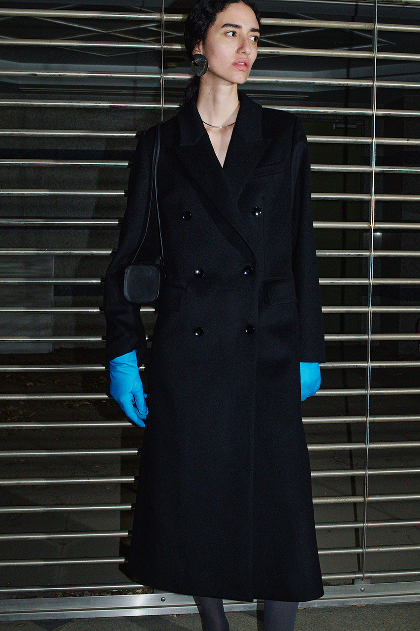 カシミヤ混リバーミドルラップコート