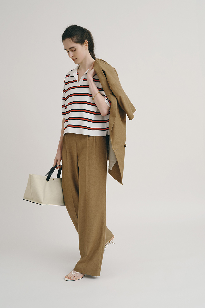 きれいめなつくりのパンツはカジュアルなトップスと合わせてもこなれた印象に。