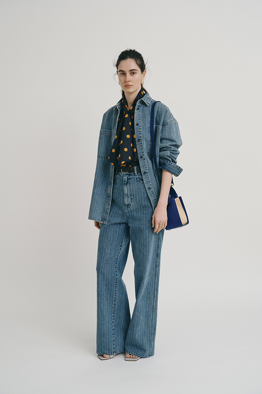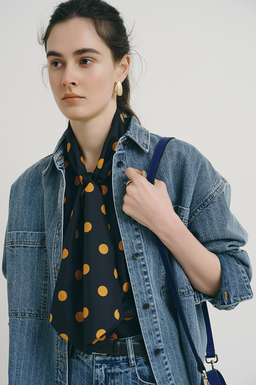 メンズライクなデニムルックからのぞくドットはキュートさをプラス。