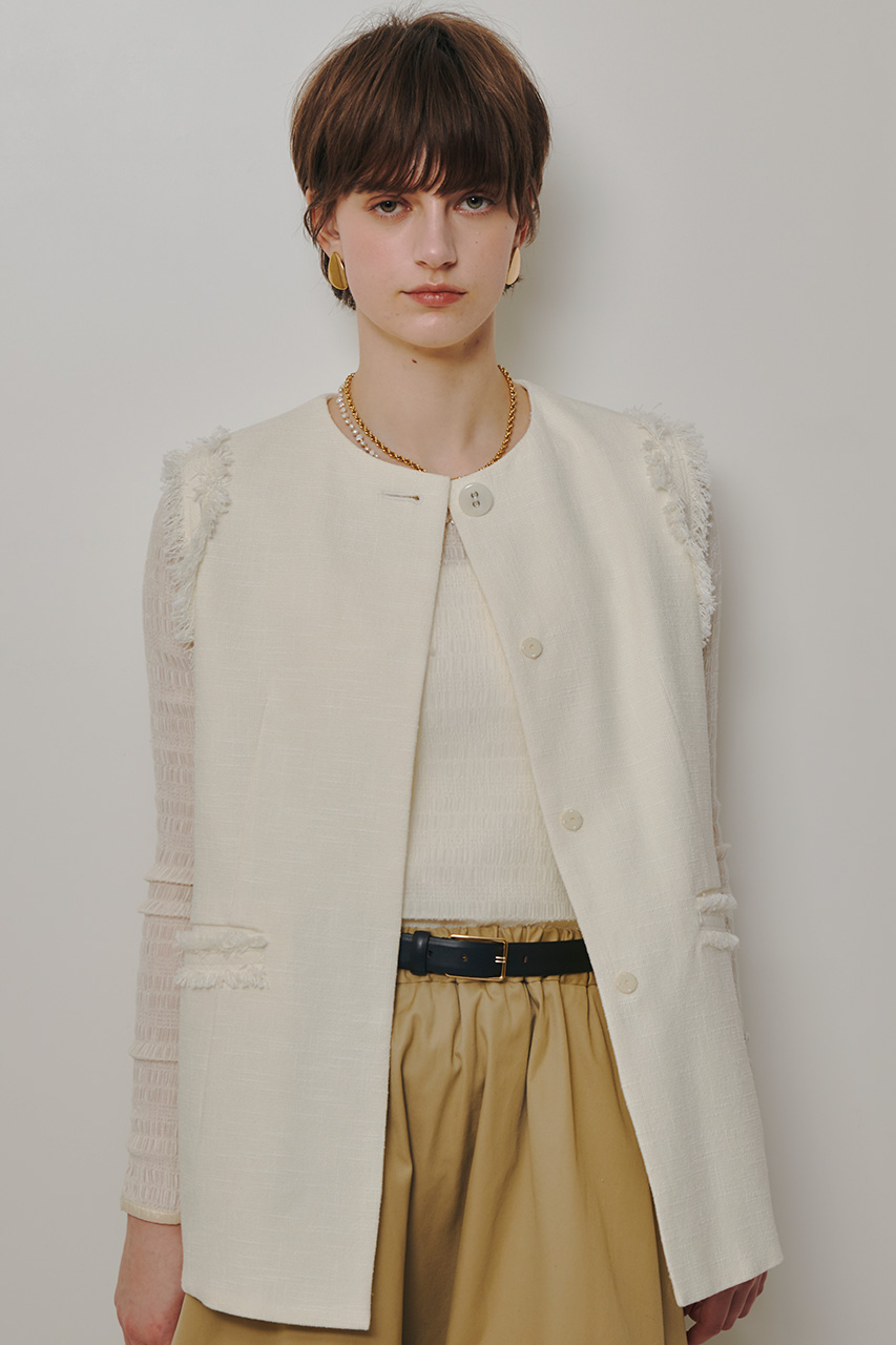 ナチュラルなオールホワイトのコーデは今季イチ押しのスタイリング。ホワイトにブラックを差すと、より黒が引き立ちアクセントに。重くなりがちなツイードは、ホワイトをチョイスすればシーズンを通して活躍してくれそう。