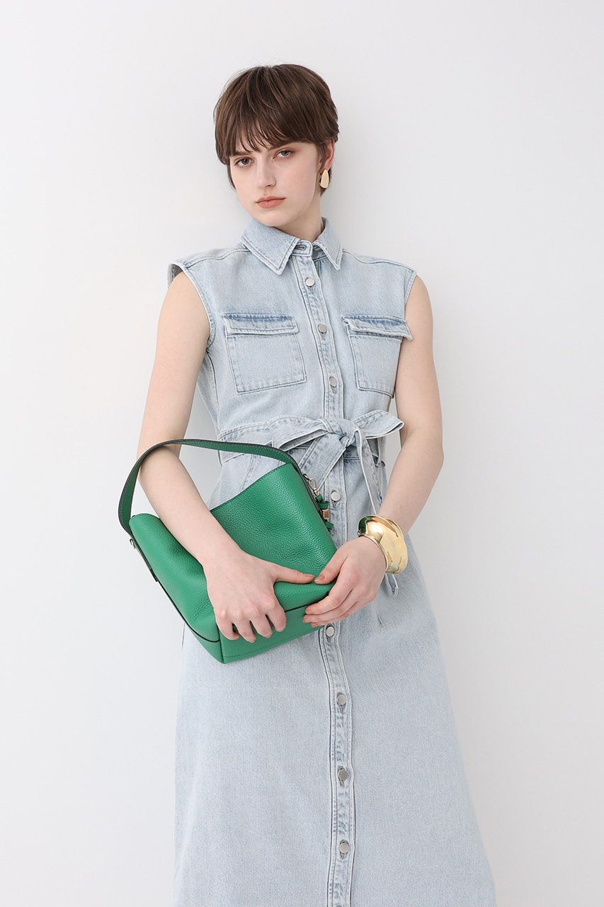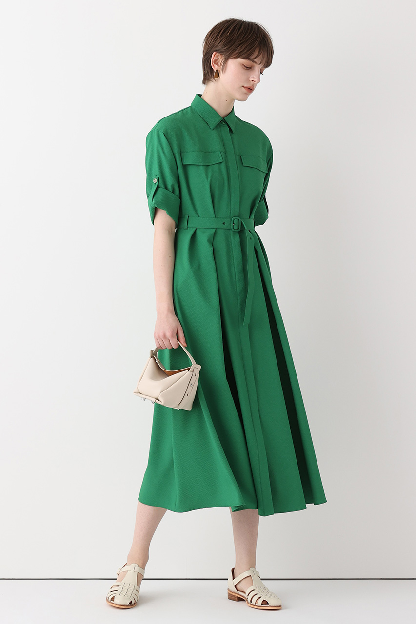 コーデがぐっと映えるグリーン。ワンピースも甘くなり過ぎずハンサムな印象に。小物で差し色を効かせるのもおすすめ。