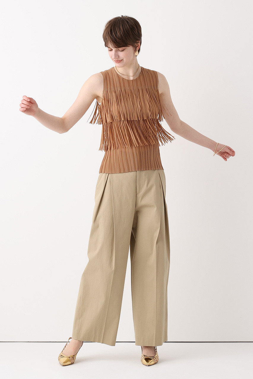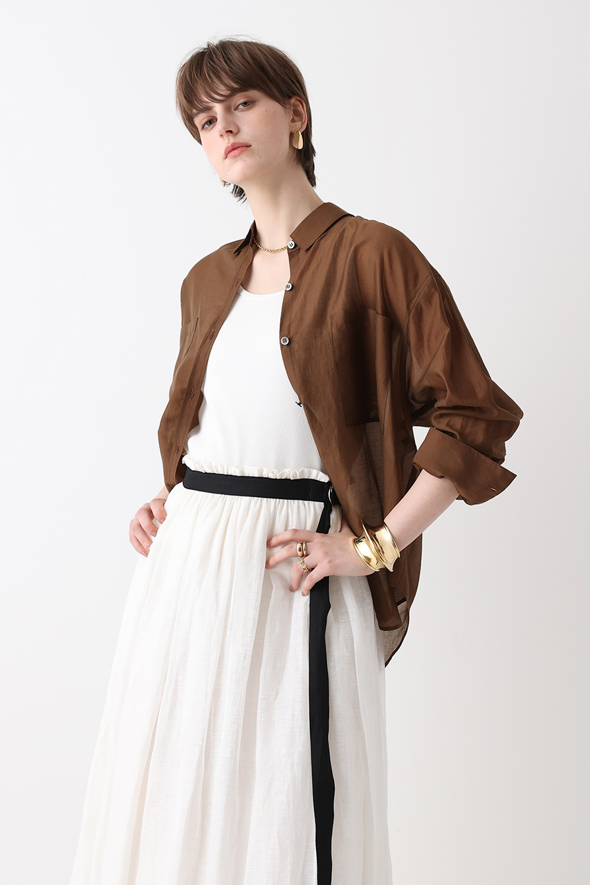 シックなブラウンは、ドレープやシアー素材で軽さを出し、春夏らしい抜け感を演出。ワントーンで上品に決めて。