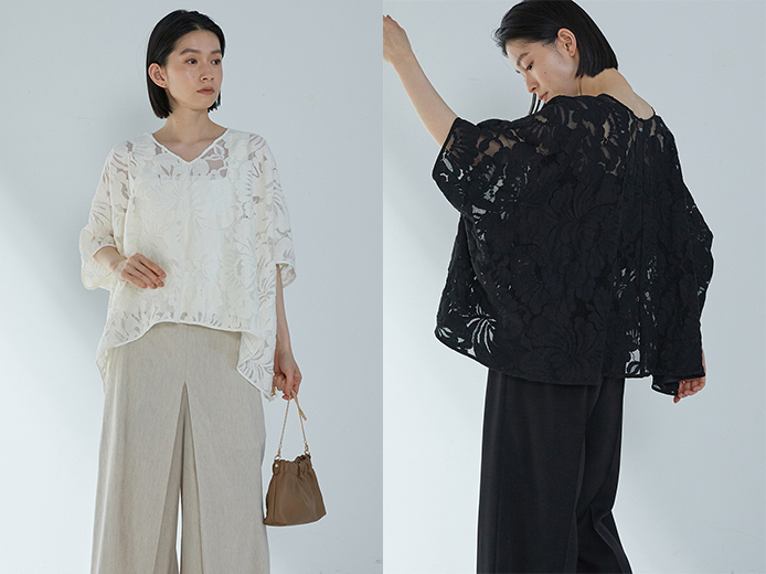 ダイナミックで華やかなレースが目を惹くブラウス。