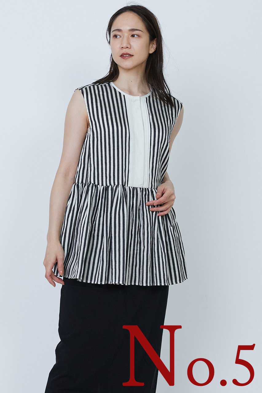 No.5 ビスコースストライプペプラムブラウス