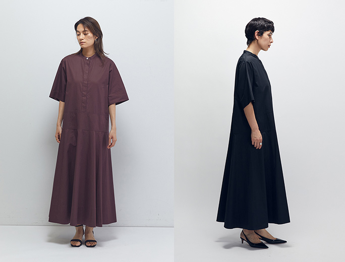 ワンピースは後ろ姿まで抜け感のある大人のニュアンスを演出。