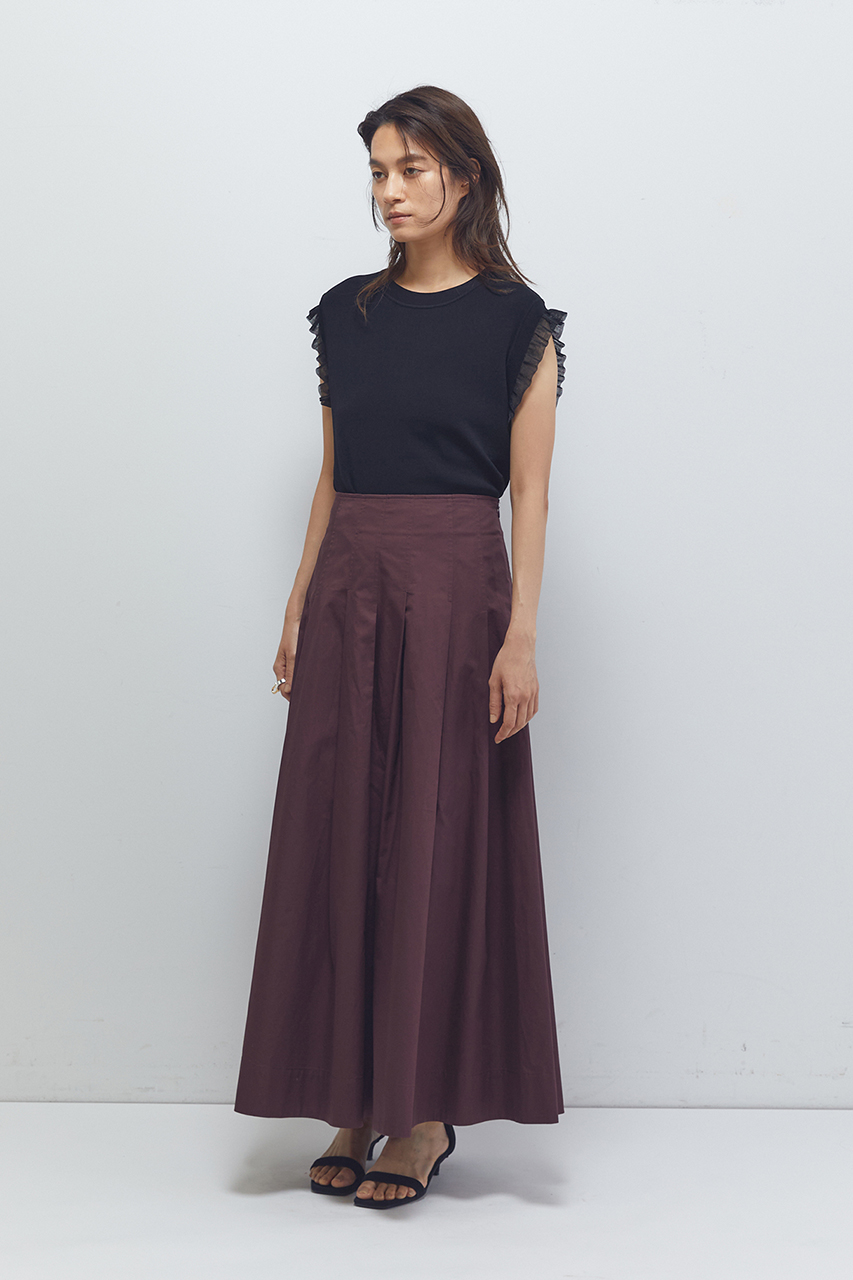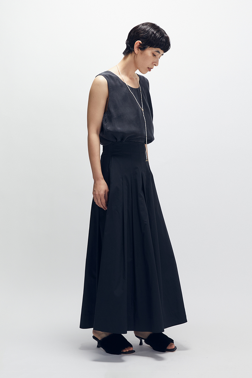 ウエスト回りに施したタックは、腰回りがすっきりと見えるデザインがポイント。