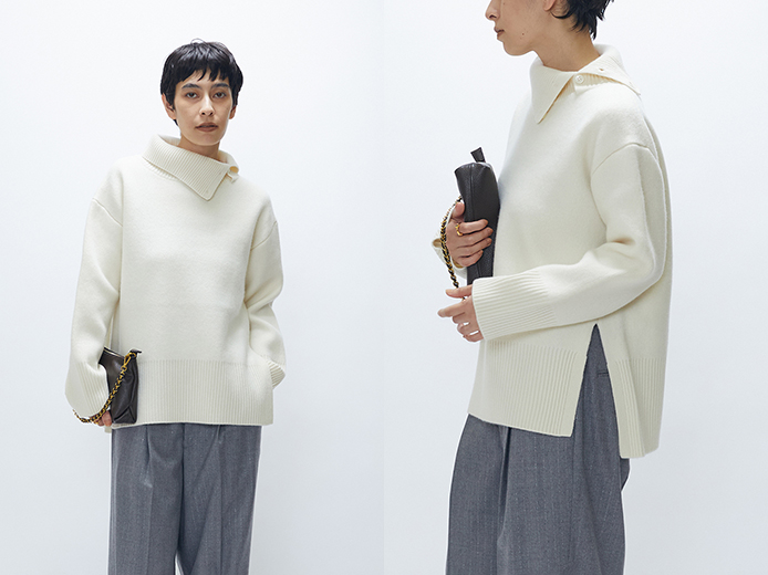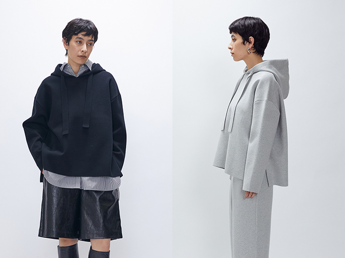 ニットならではの上品な表情で、スウェットパーカーのようにカジュアルになりすぎず、大人らしい着こなしが叶います。