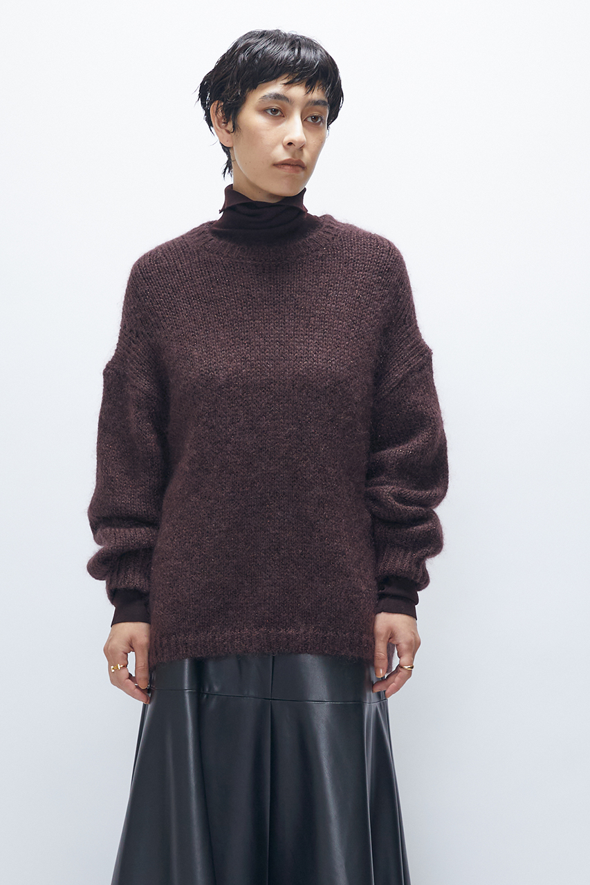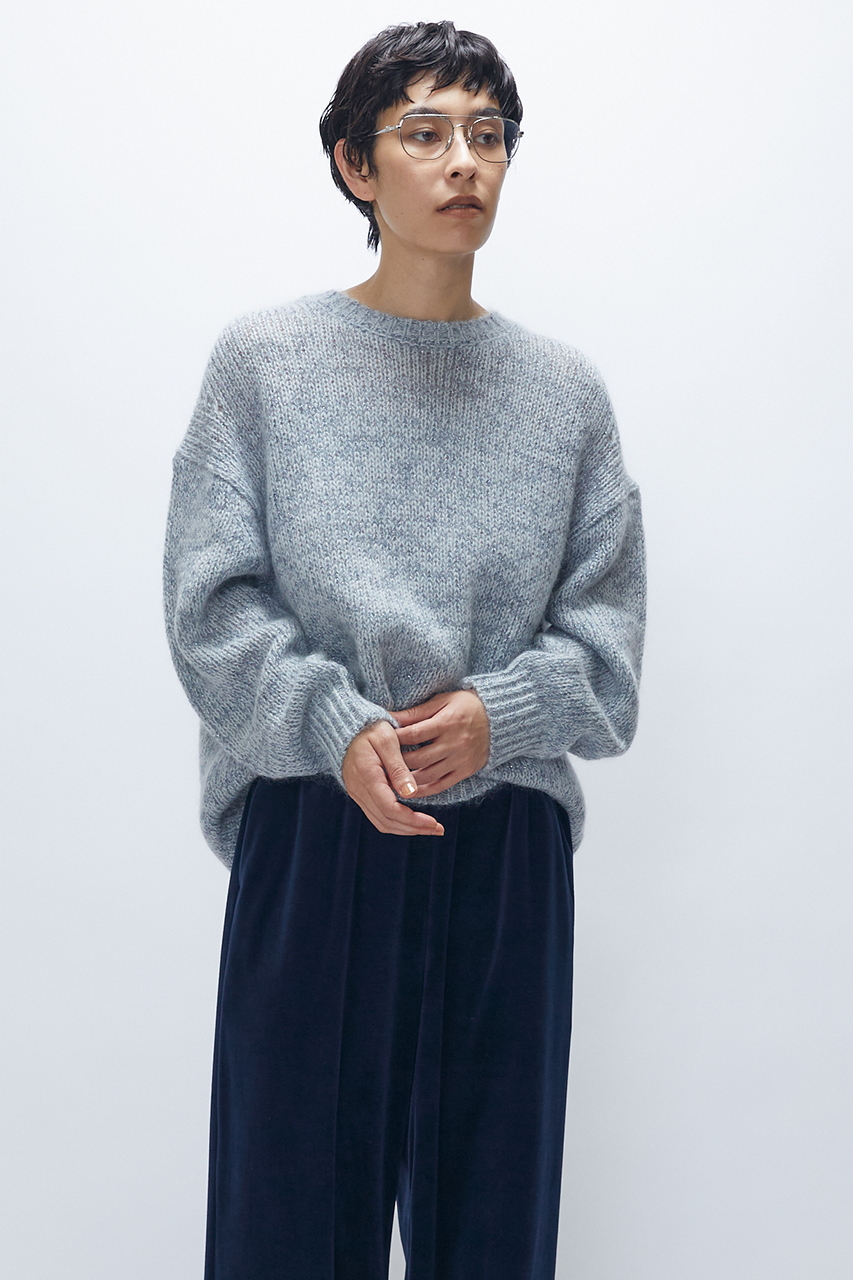 モヘアラメリリヤーンクルーネックニット