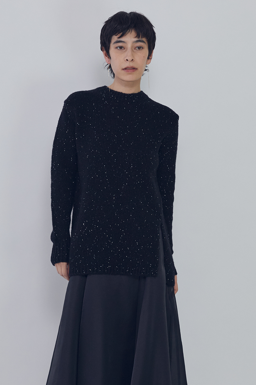 繊細なラメノットを紡績した華やかな糸を使用したニットプルオーバー。