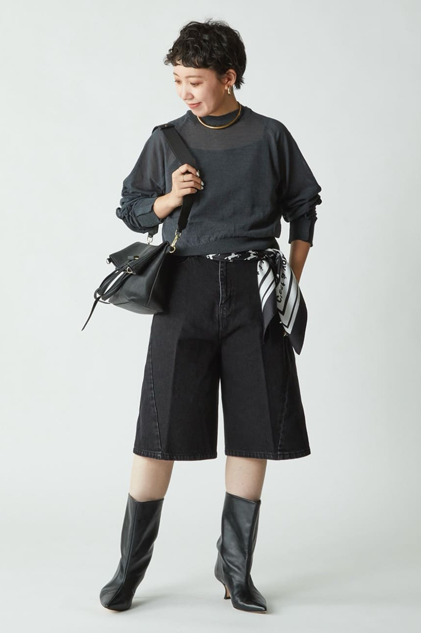 1.デニムハーフパンツ×シアーニット
