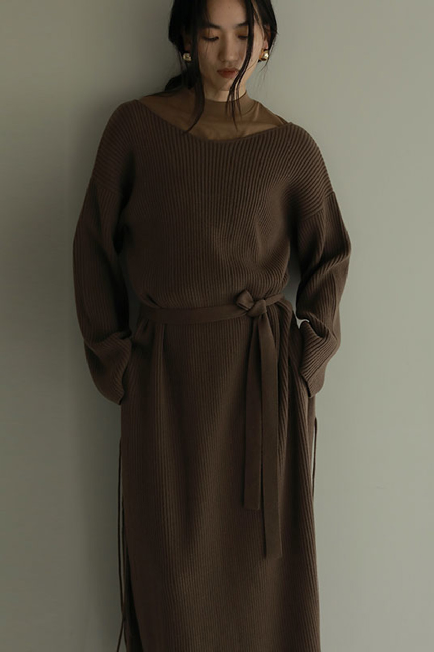 布帛のように見えるポンチ素材を採用し、高密度に編み上げたハリ感のあるデザインに仕上げました。フレアで仕立てたヘムラインもポイント。ロングワンピースから足元のフレアを覗かせれば、装いに奥行きが生まれ新鮮なスタイリングが完成します。今季はオーバーサイズジャケットやカーディガンと合わせたカジュアルスタイルがおすすめ。