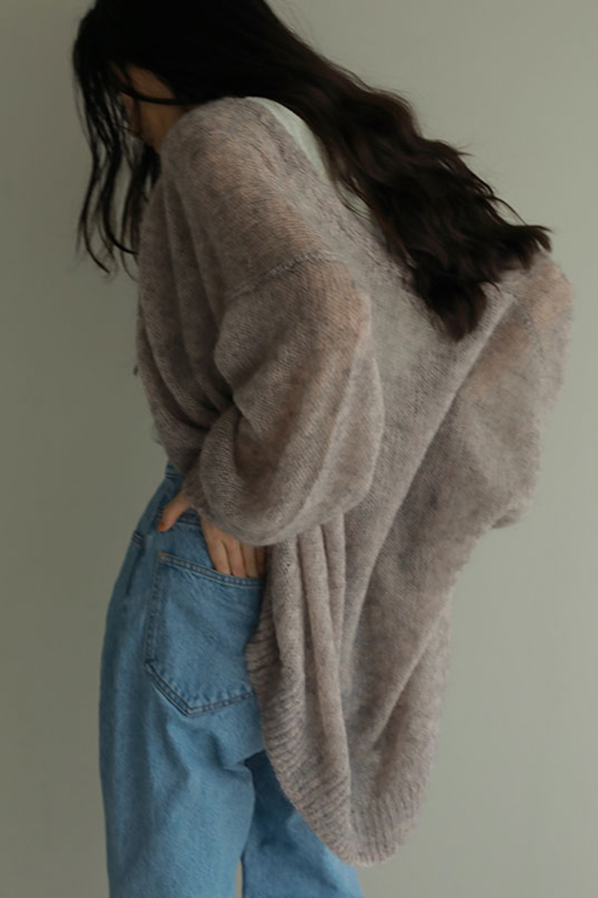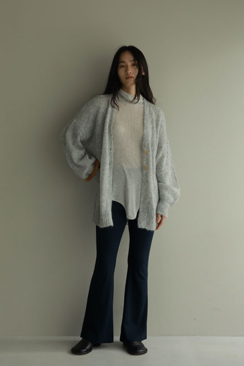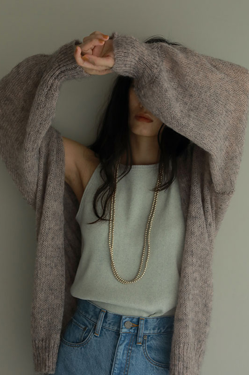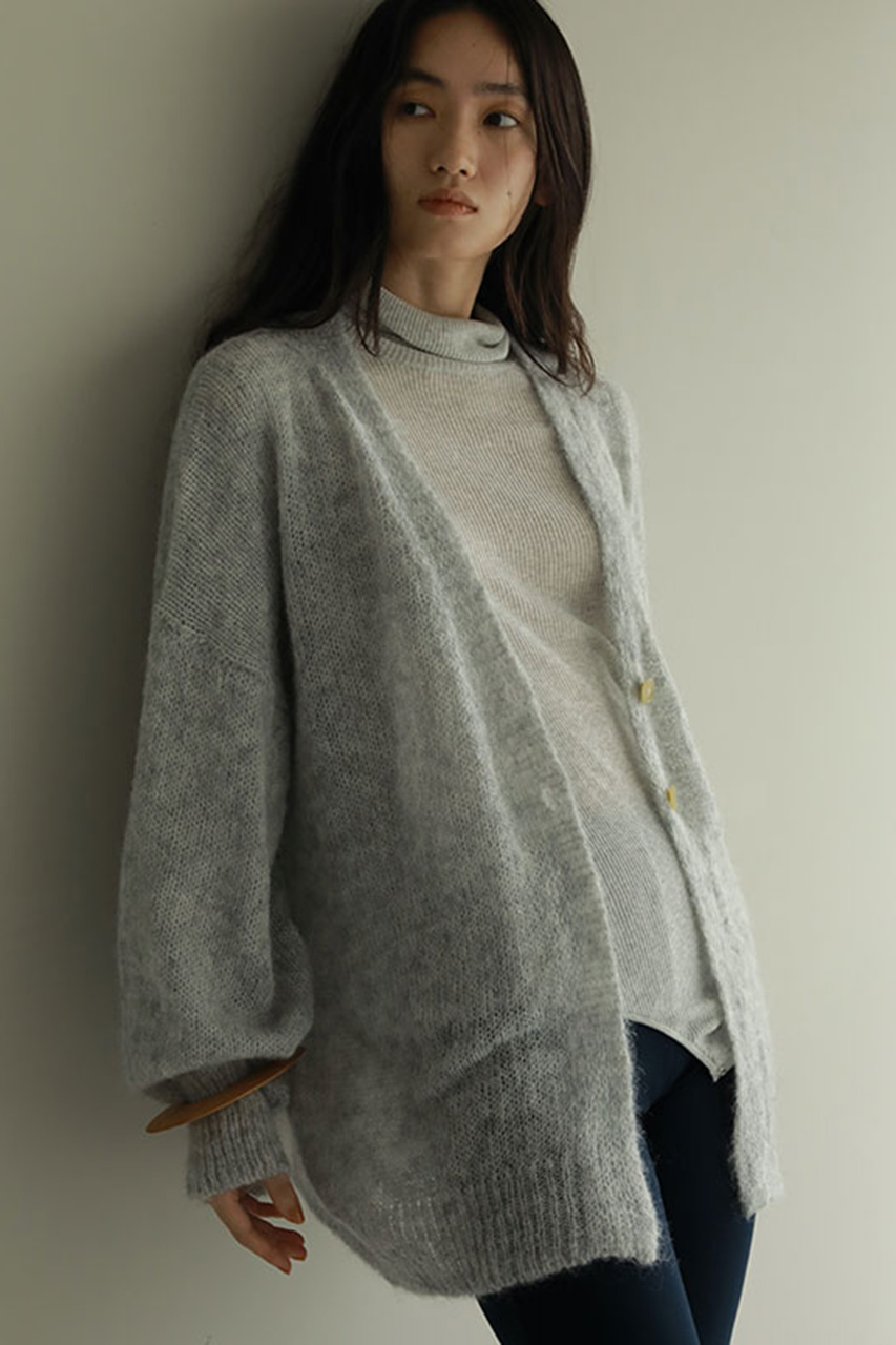 前立てをなくし、モードな印象に仕上げたモヘヤニットカーディガン。