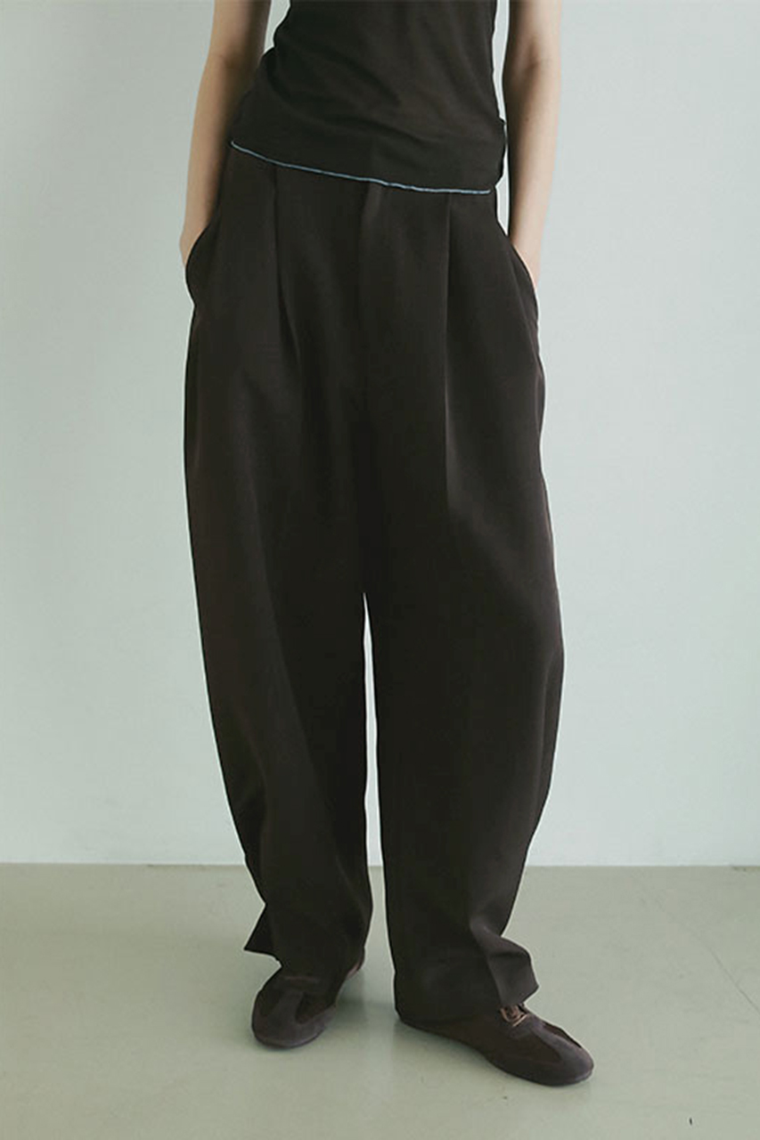 立体的なコクーンシルエットが新鮮な、サイドヘムタックパンツ。