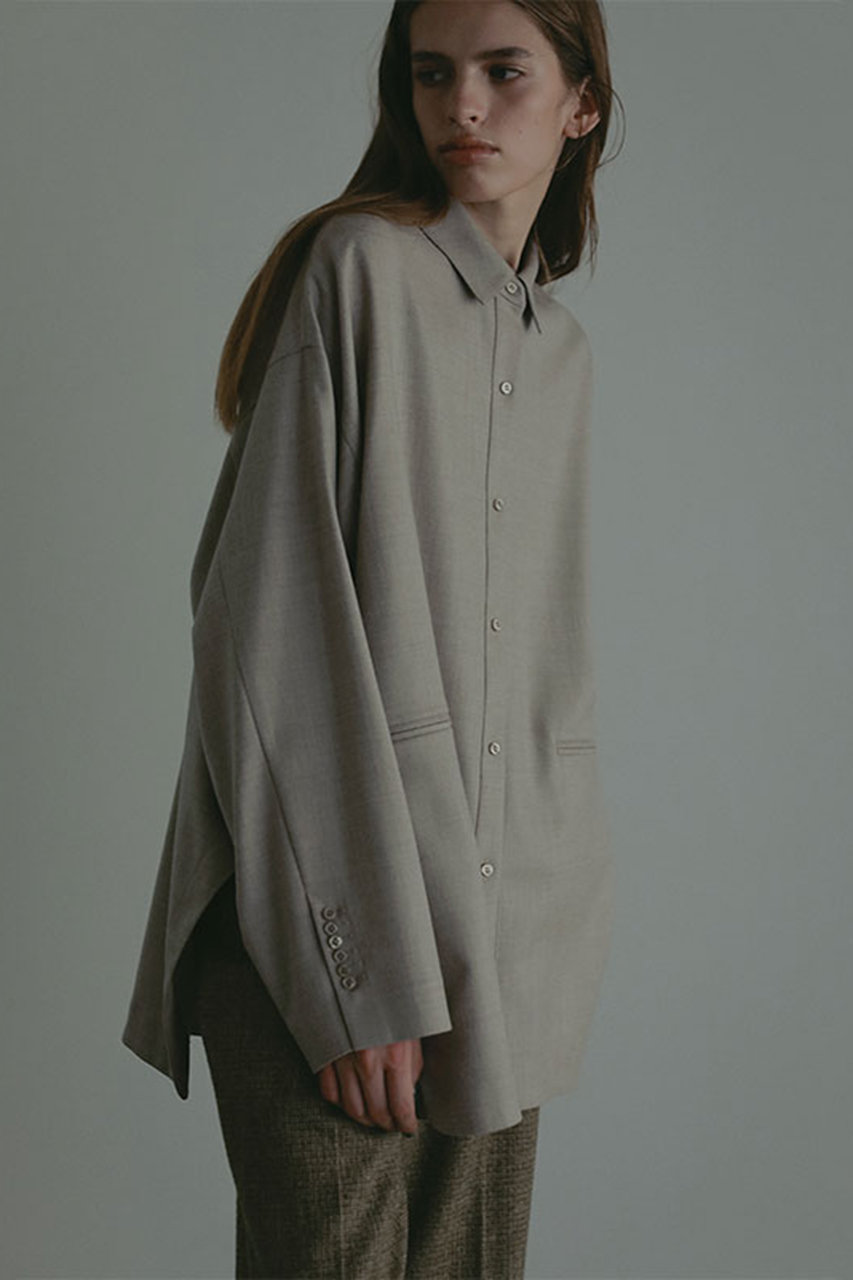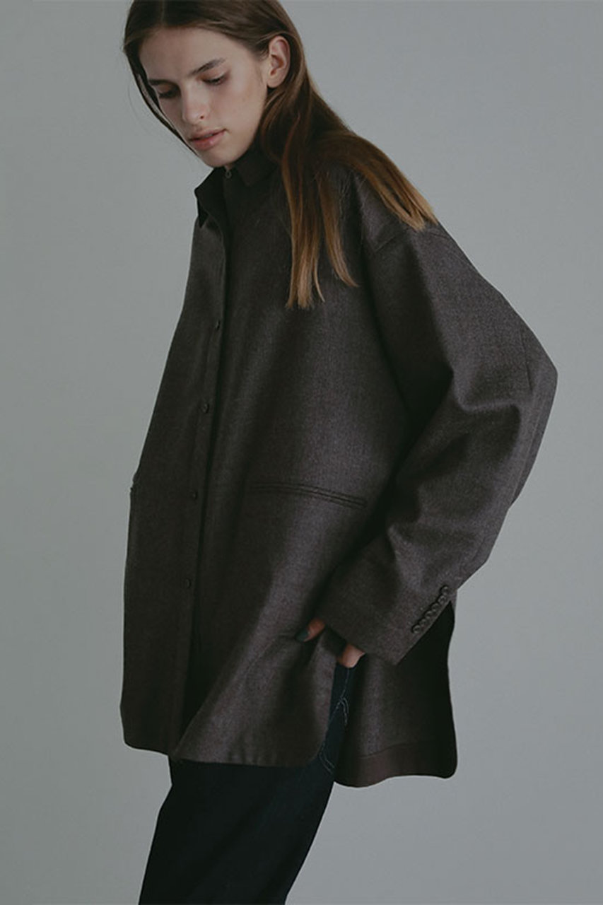羽織るだけで洗練されたムードをまとえる、ウール混フラノのオーバーサイズシャツ。日本が誇る織物の産地・尾州で織り上げた高密度フラノ素材は、軽やかさとハリ感を両立。薄手ながらもほどよくハリがあり、秋口から軽アウター感覚で着用できそう。肩を落としたゆとりのあるシルエットとヒップまで隠れる長めの着丈が、抜け感のあるバランスを演出。裾脇にはさりげないカーブデザインを施し、動きのある立体的なシルエットに。袖口はすっきりとした一枚仕立てで、インナーとして重ね着した際もごわつかず、ロングシーズン活躍。秋の始まりには一枚で、冬はニットやアウターの下に、と着こなしの幅がぐっと広がるアイテム。