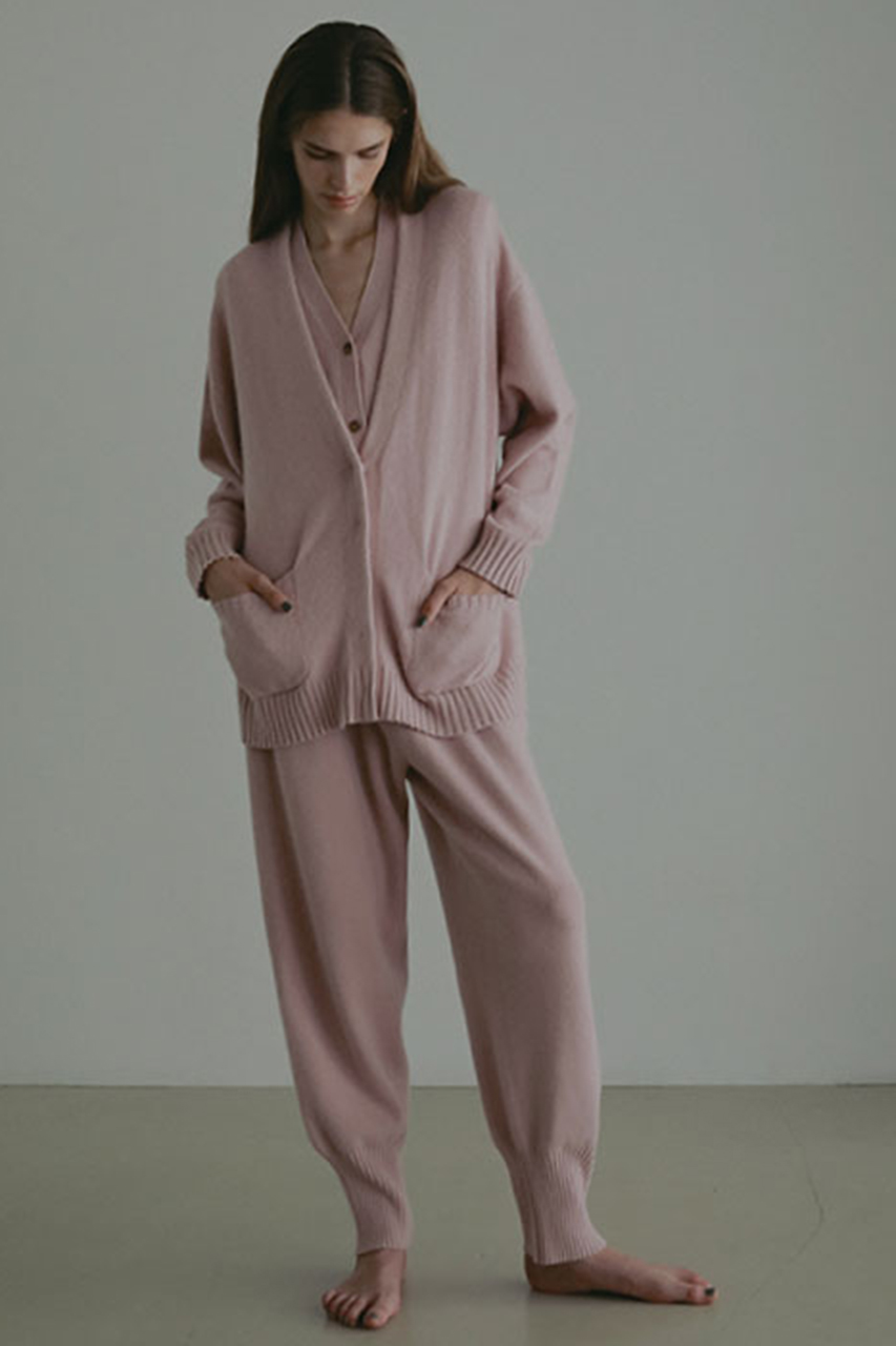 同素材のニットパンツとセットアップで着用すれば、上質なリラックス感のあるスタイルが完成。