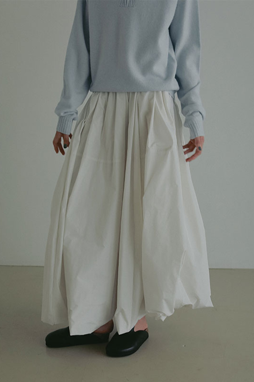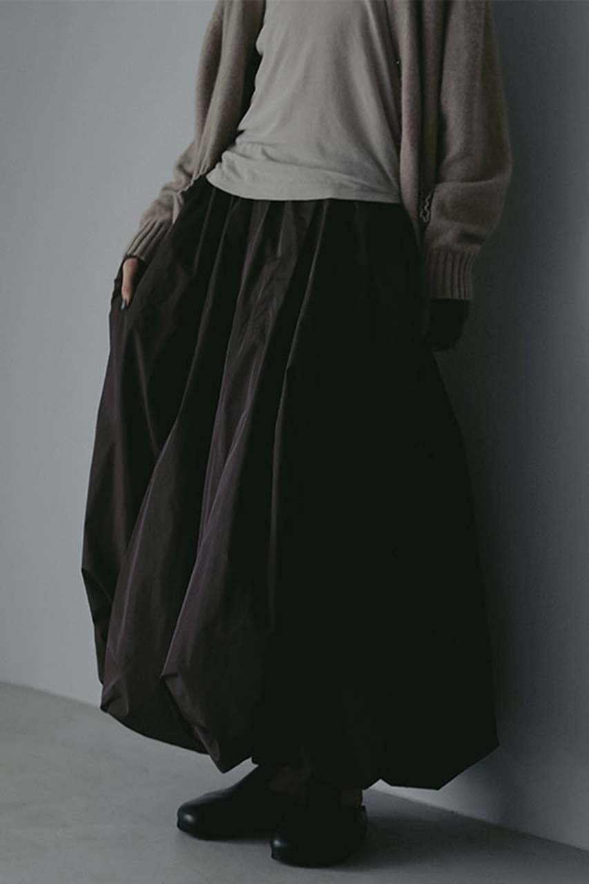 贅沢な分量感と立体的なフォルムが目を引く、ボリュームバルーンロングスカート。