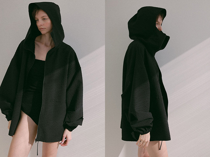さらに、予約会で好評だった【ELLE SHOP限定】サッカーストレッチフードブルゾンも、まもなく再販売スタート。