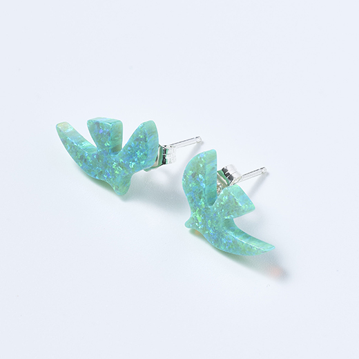 微細に砕いた天然石を樹脂で閉じ込めた、光により異なるきらめきが魅力のカラーレジンピアス。可愛らしいラ・コロンブのデザインとニュアンスのある天然石のコンビネーションが、他とは一線を画す魅力です。ご自身の“アミュレット(お守り)”としても、大切な方へのギフトにもおすすめです。