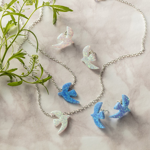 パリの工房で一つずつ手作業で作られる、24金コーティング のビジュージュエリー。「セシル・エ・ジャンヌ」のシンボルであるラ・コロンブ(フランス語で鳩)は、愛と平和の象徴であり、パワーの源とも言われます。上品さと華やかさをあわせ持つジュエリーは毎日のスタイリングにも、パーティのお供にも。