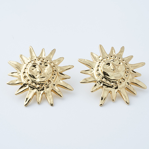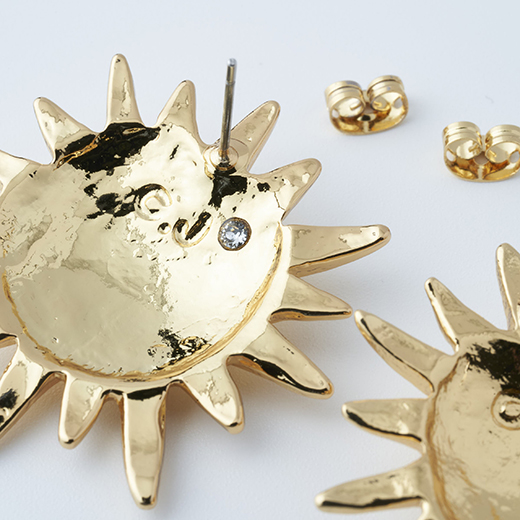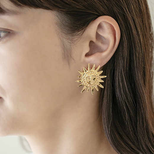 シンプルな装いに一点投入するだけでグレードアップしてくれるソレイユ ピアスは、シルバーとゴールドがラインナップ。完売していたゴールドが再入荷しました。上質な素材でつくられた精巧なモチーフは、パッと目を引く華やかさと強い存在感がありながら、職人によるハンドメイドの技巧とマットな質感で、品よく付けられる大人の逸品に。
