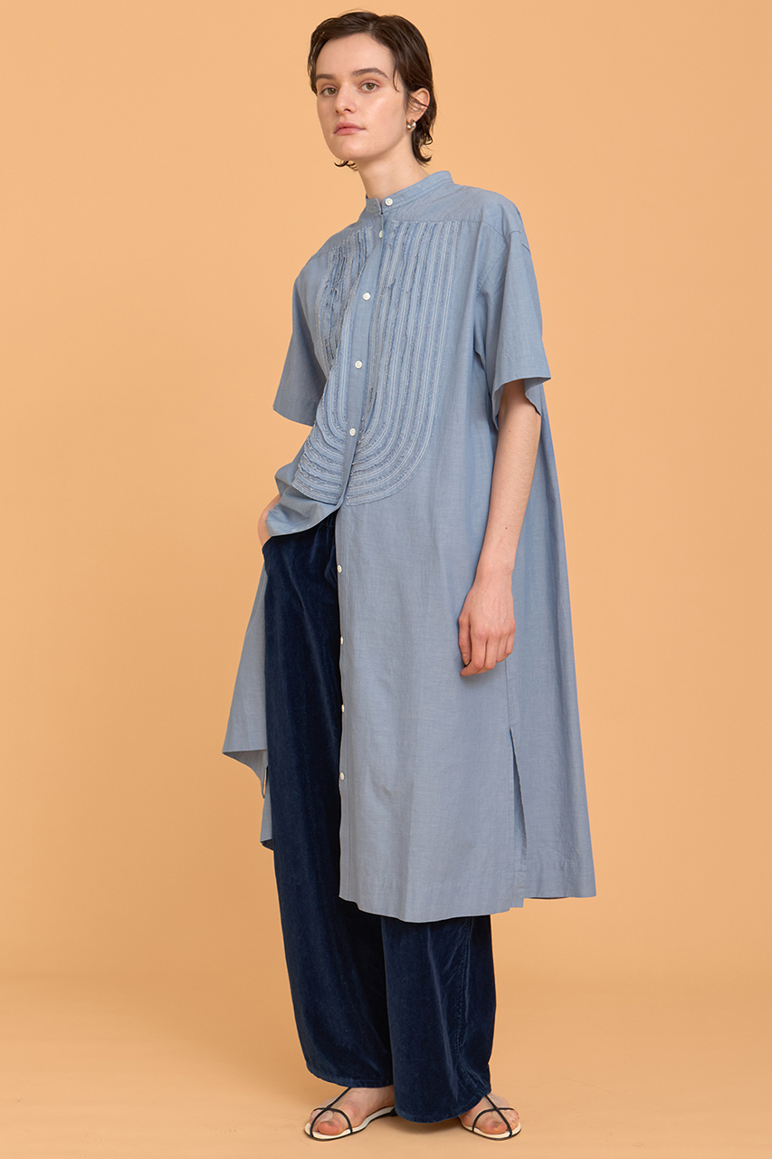 はじまりはデニム、ダンガリー、シャンブレーなどインディゴブルー系の素材が揃います。異なるトーンや素材を重ねることで表情豊かなスタイリングに。長く続く残暑日でも着こなせる清涼感のあるアイテムで、いち早く秋の気分を取り入れて。