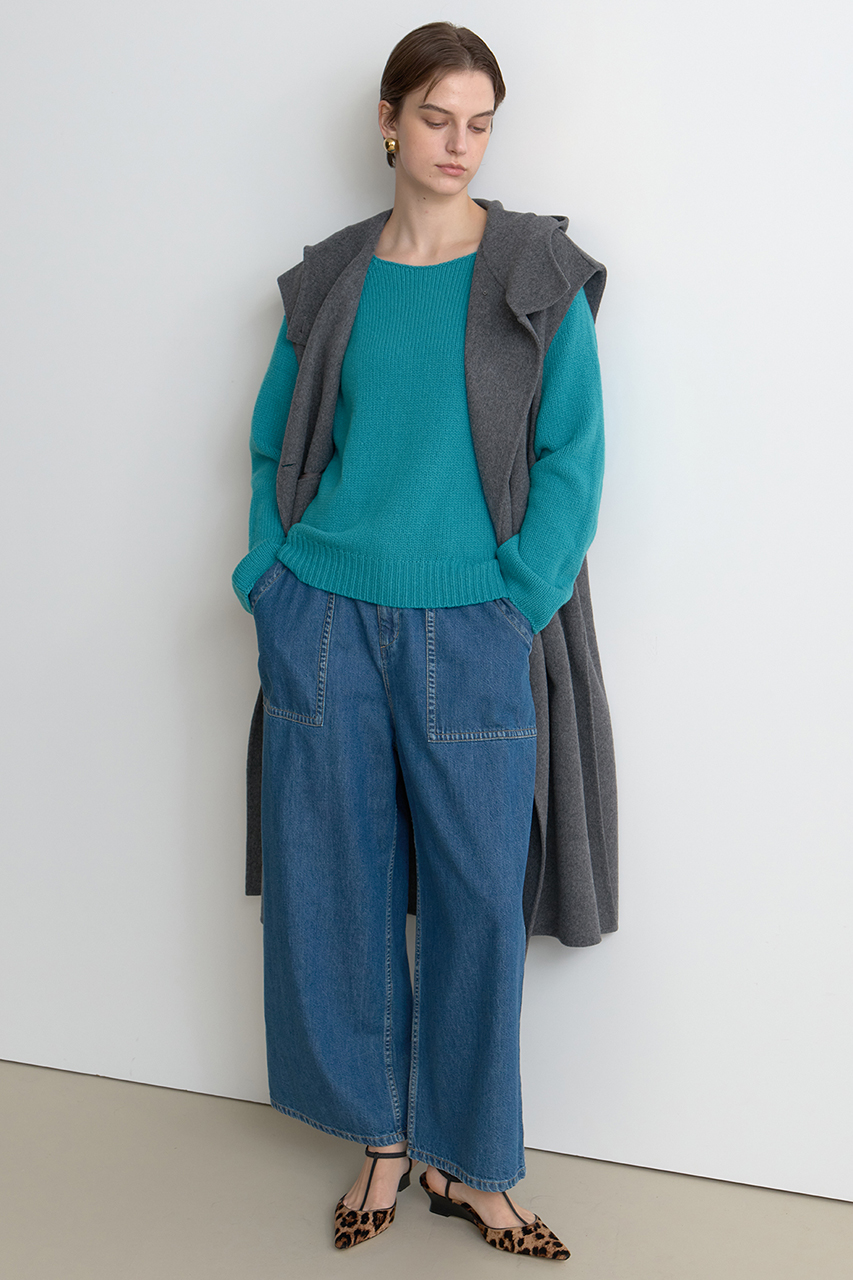 「ハウス オブ ロータス」ロングセラーのデニムベイカーパンツ。ウエストがサイドからバックにかけてゴム仕様になっているストレスフリーなはき心地と体型を選ばないワイドストレートシルエットが人気の理由。