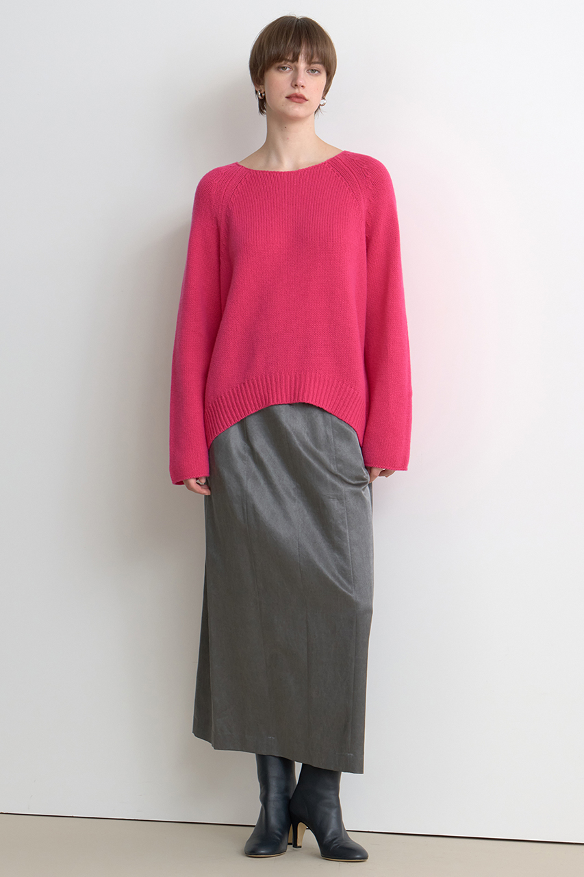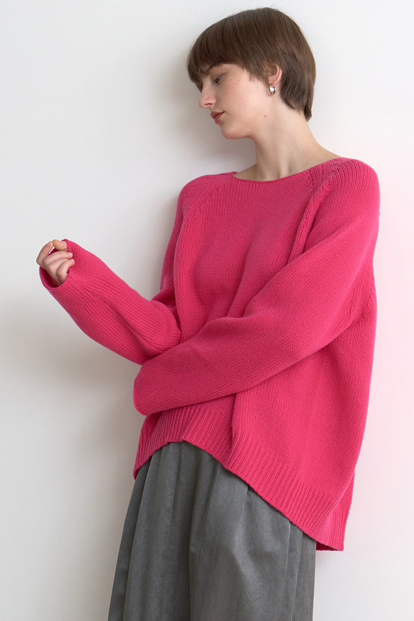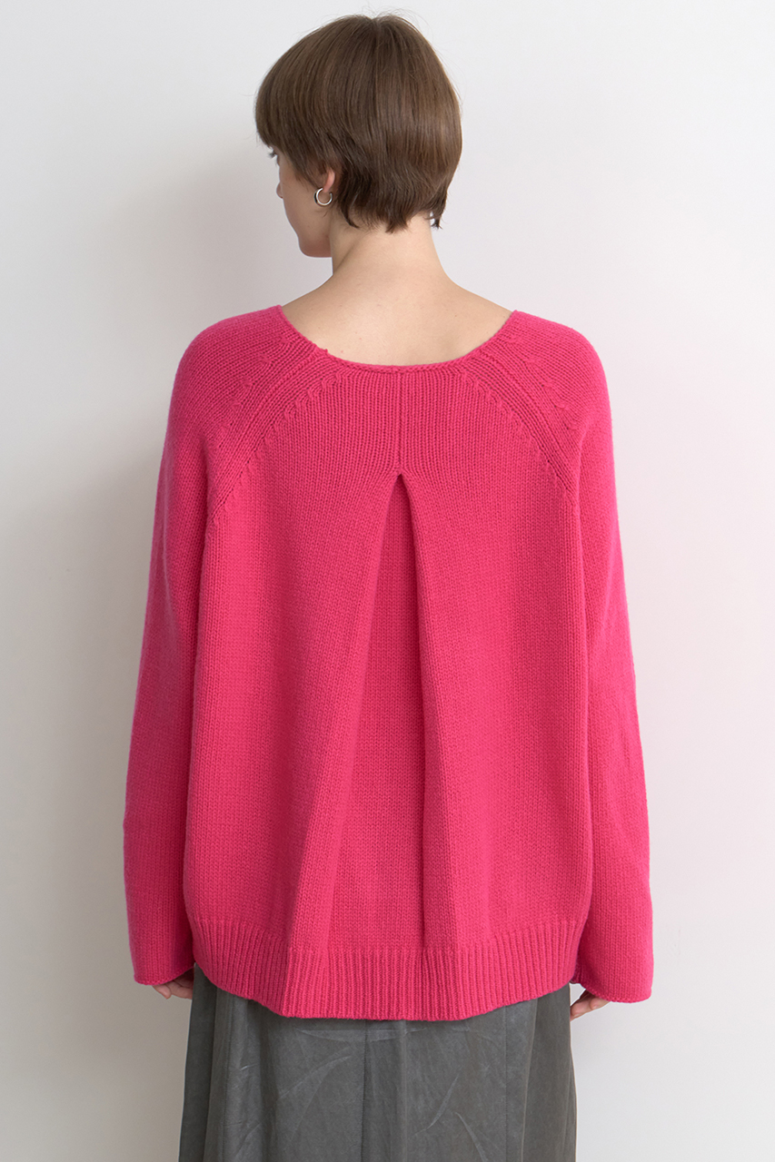 こちらも昨年から引き続き人気のニットプルオーバー。バックに大きくタックを入れて、シンプルな中にもひと癖あるデザインが支持を集めています。女性らしい抜け感のある広めのネックラインが一枚でも、アウターを羽織った時でもバランスよく決まります。