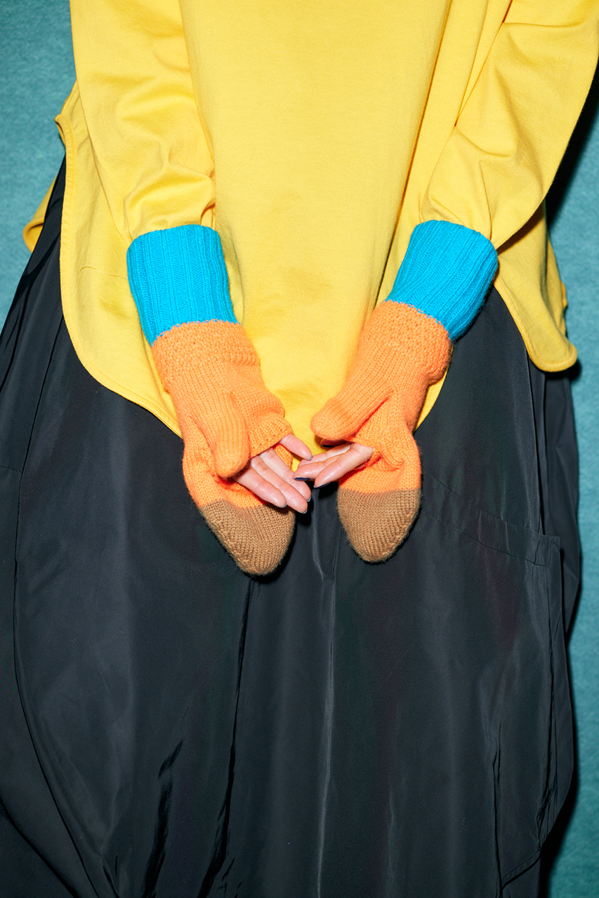 「ナゴンスタンス」のニット帽や手袋とのスタイリングがおすすめ。